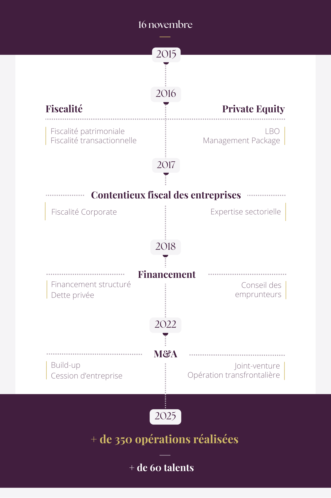Depuis 10 ans, cette conviction guide chacune de nos actions : être bien plus que des experts du droit et de la fiscalité, comprendre les modèles économiques et les enjeux de nos clients, prendre position sur des sujets toujours plus complexes, et surtout les aider à décider rapidement, même dans un environnement normatif incertain, sans céder à la pression et au pessimisme ambiant.
